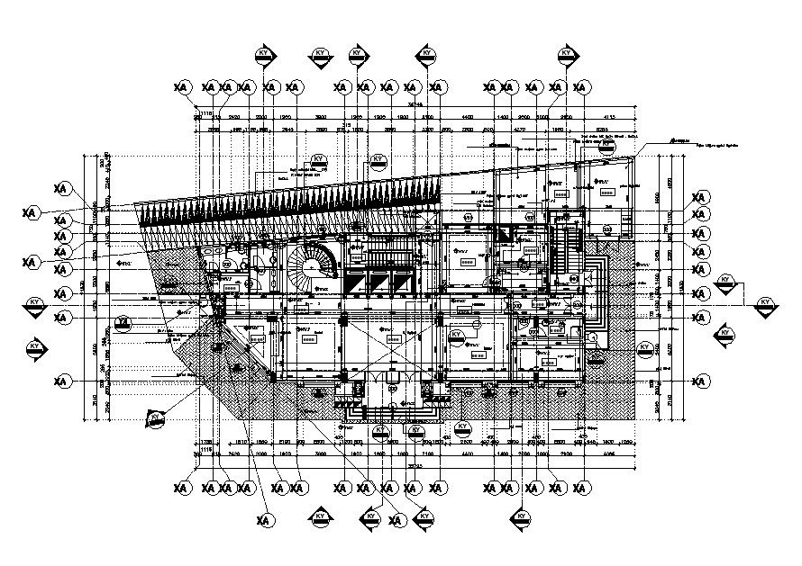 2d Drawing of commerce building hub layout plan that shows work floor plan drawing details along with dimension hidden line details. Ramp details and section line details along with various other details also presented in drawing.