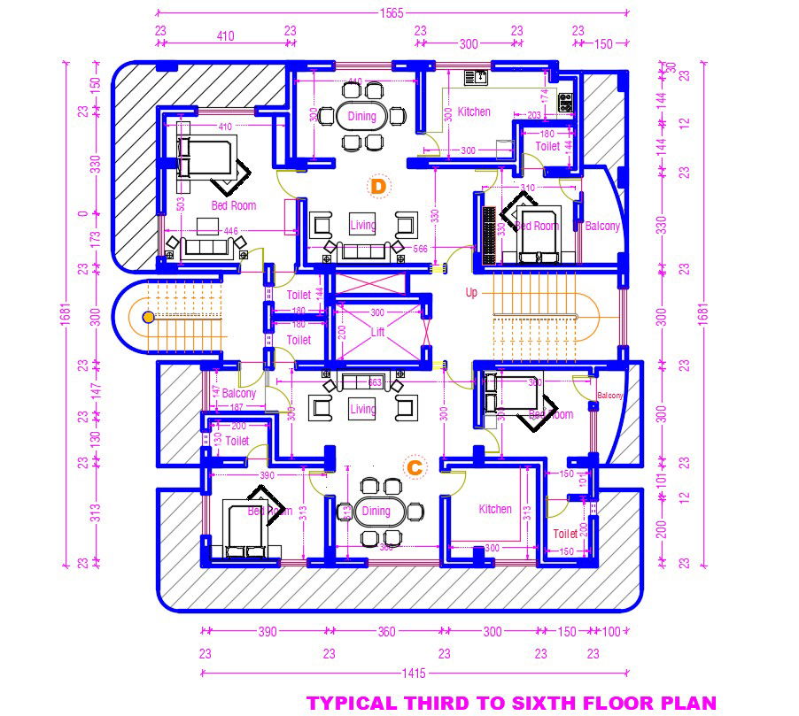House plan which shows two bedroom, kitchen, bathroom, dinning area. Staircase to go on the upper floor.