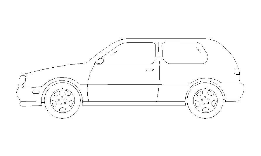 2d Car design CAD blocks that shows side elevation of vehicle four seater car.