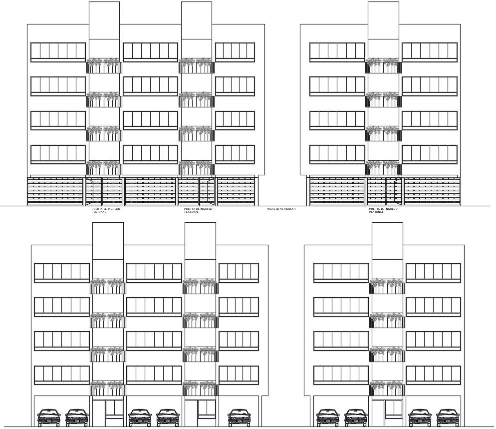 Apartment Elevation Drawings DWG File; download front side and back side apartment building elevation design in AutoCAD format.