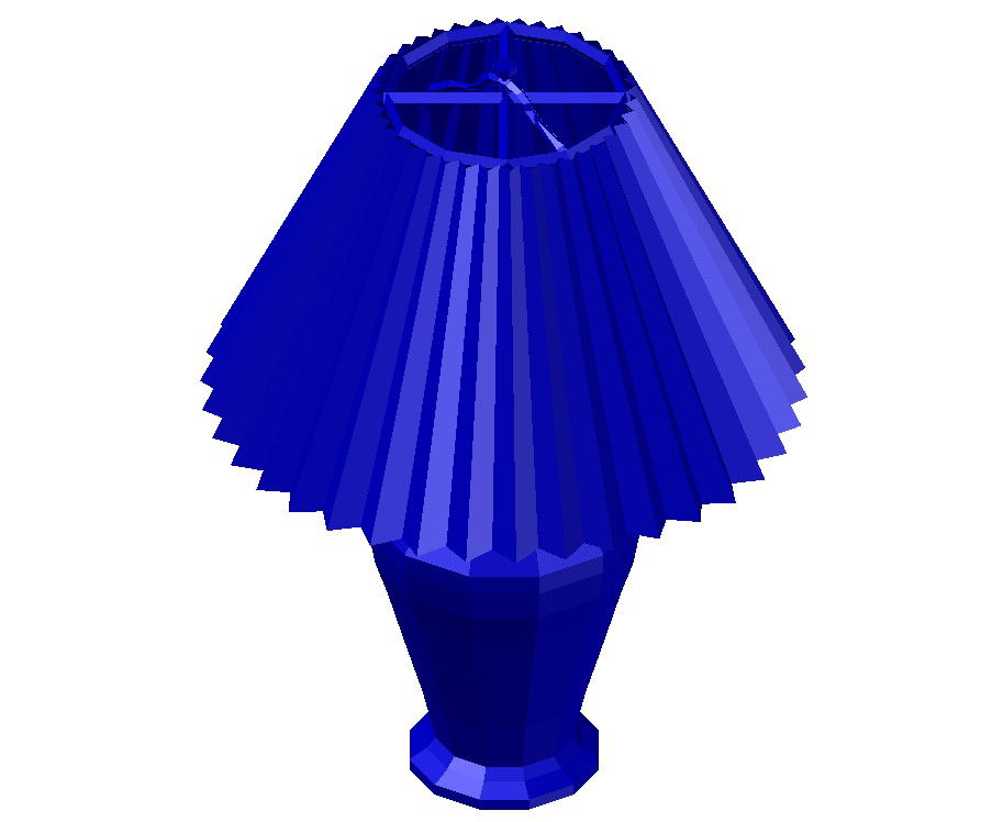 3d Drawing of lamp design CAD file that shows light lamp design along with hatching grid lines details and isometric view of lamp.