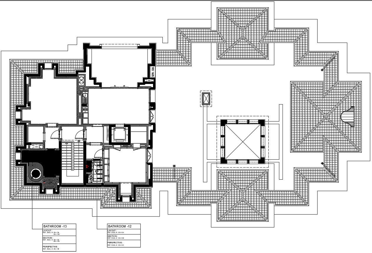 Terrace Housing CAD Drawing Download that shows the floor plan of housing units along with roofing structure details and staircase details also included in the drawing.