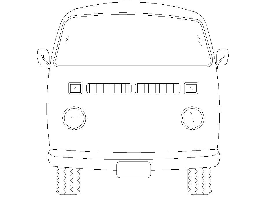 CAD drawing details of bus elevation DWG file that shows the front elevation of vehicle CAD block.