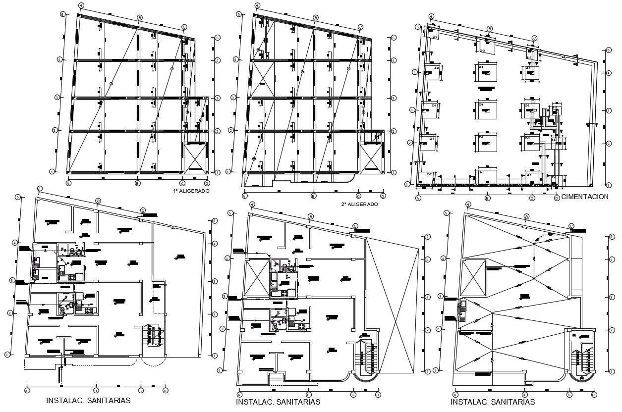 Download Apartment Construction Plan DWG File; the architecture layout plan, foundation plan, and sanitary installation detail of Apartment Construction Plan.