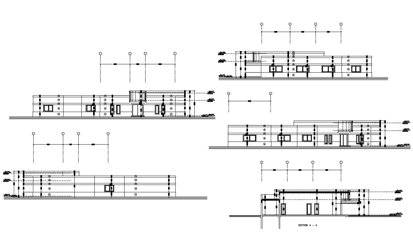 Elevation and section of a public toilet CAD file that shows different sides of elevation of the sanitary toilet along with sectional details.