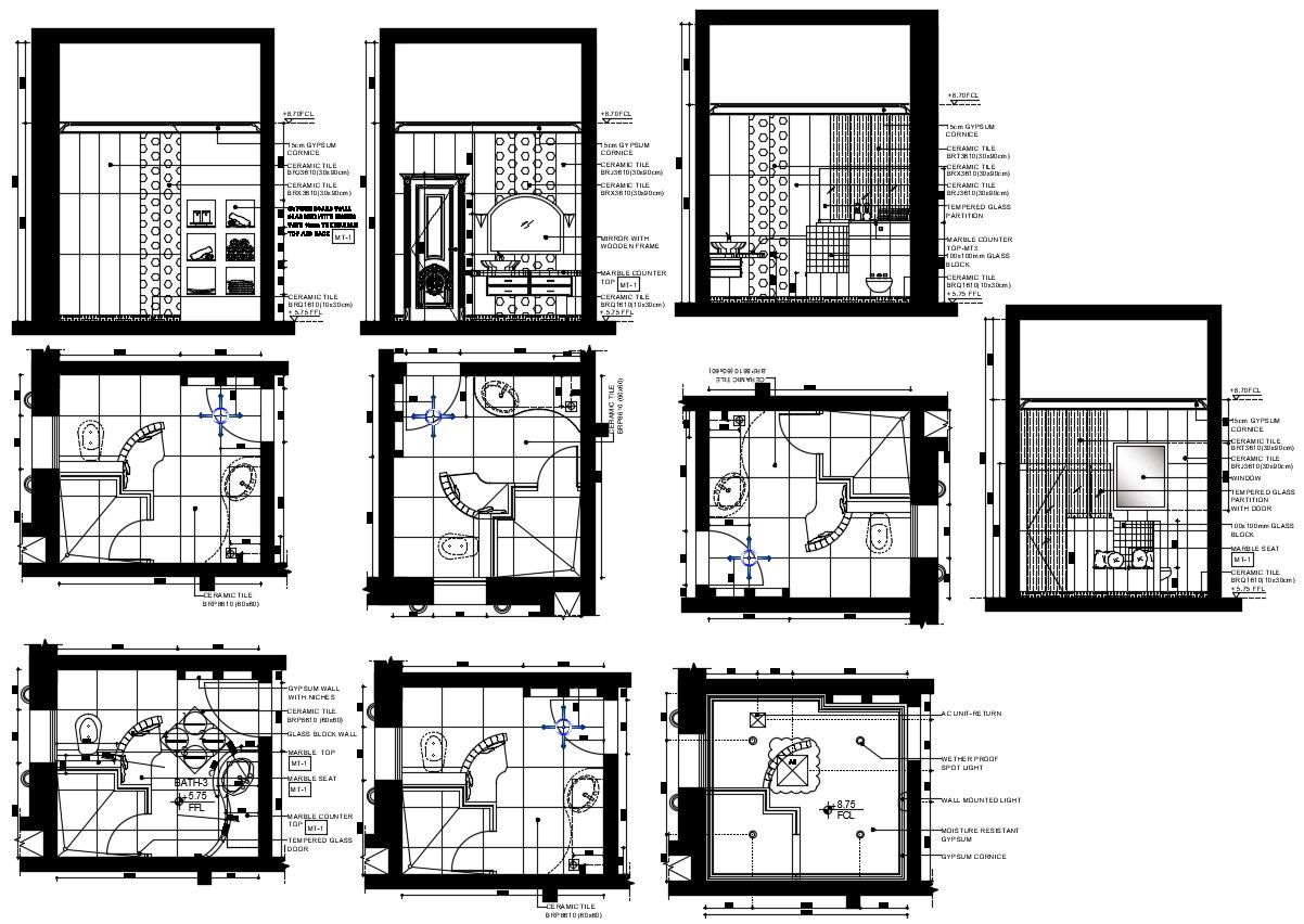 Bathroom Designs for Home CAD Drawing