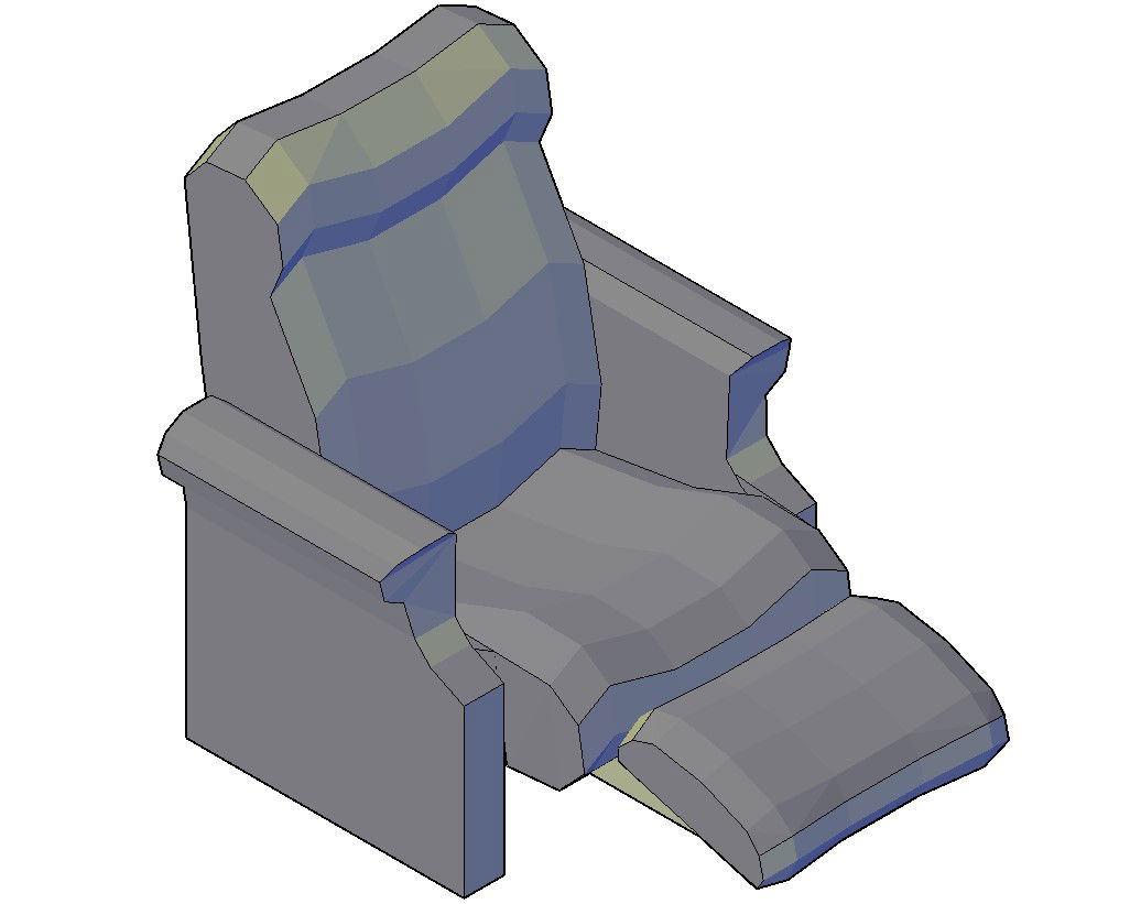 3d CAD drawing of relaxing chair that shows an isometric view of chair furniture blocks details.