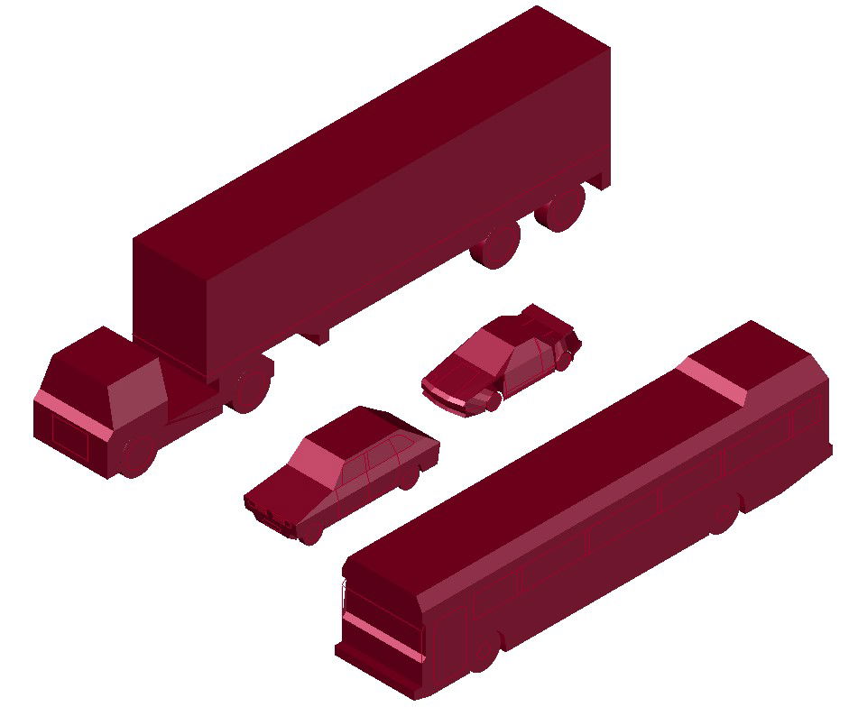Vehicle design 3d CAD blocks that show vehicle blocks details of truck, bus, and cars.