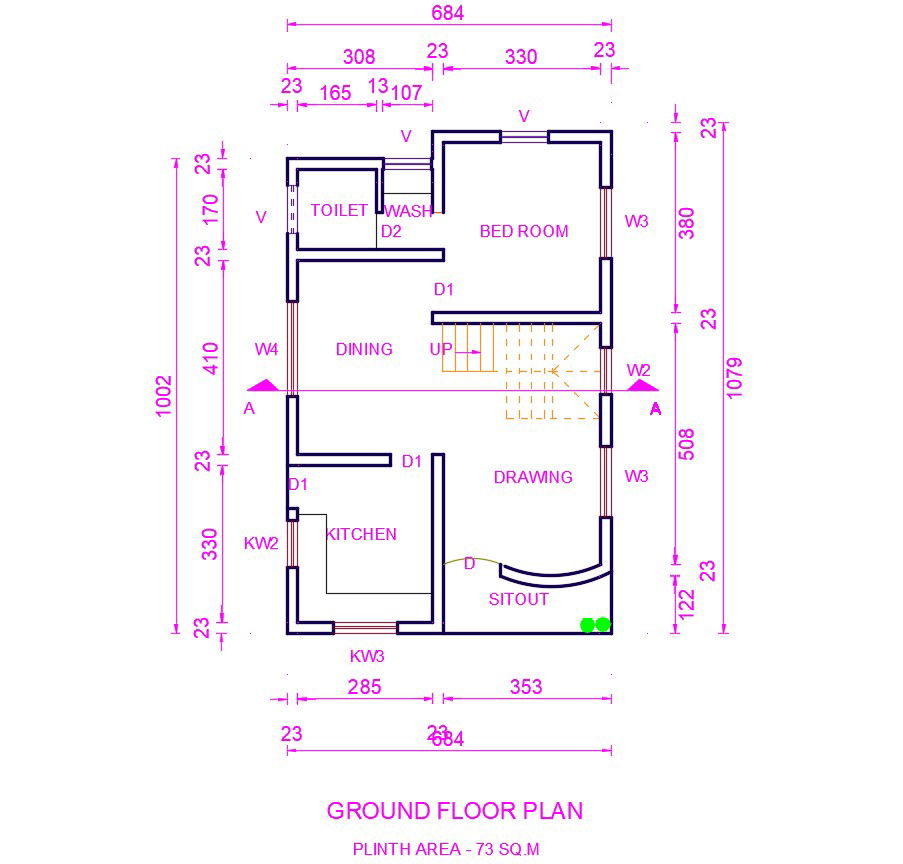 Ground floor plan includes one bedroom along with a toilet, dining area, a cookhouse, staircase to go up. Download the floor plan.