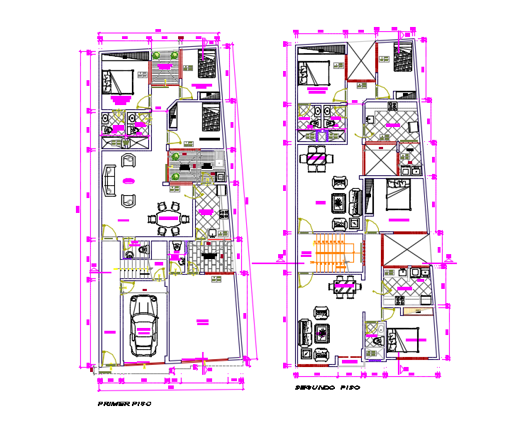 Bungalow plan which includes the details of the car parking area along. In the house, it consists of bedrooms, kitchen, sitting hall, dining hall, washroom. There are a ground floor and first floor in the bungalow.