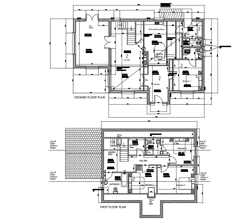 House Plans With Furniture Layout AutoCAD file; the architecture ground floor plan and first-floor plan with furniture layout plan, dimension, and description details of residence house plans. download DWG file of the house plan and use it for your CAD presentation.