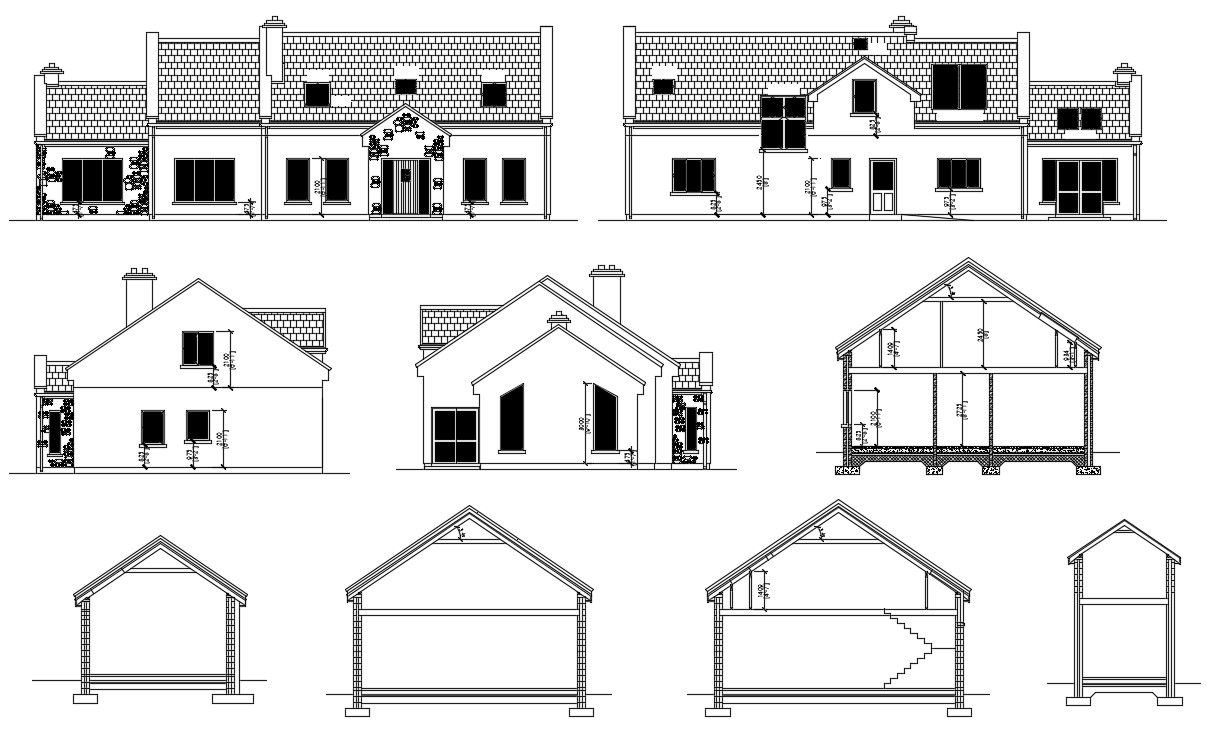 Truss Roof House Plan DWG File; residential truss roof house plan AutoCAD file includes section plan and elevation design with dimension details. download house plan DWG file and get more detail about House CAD drawing.