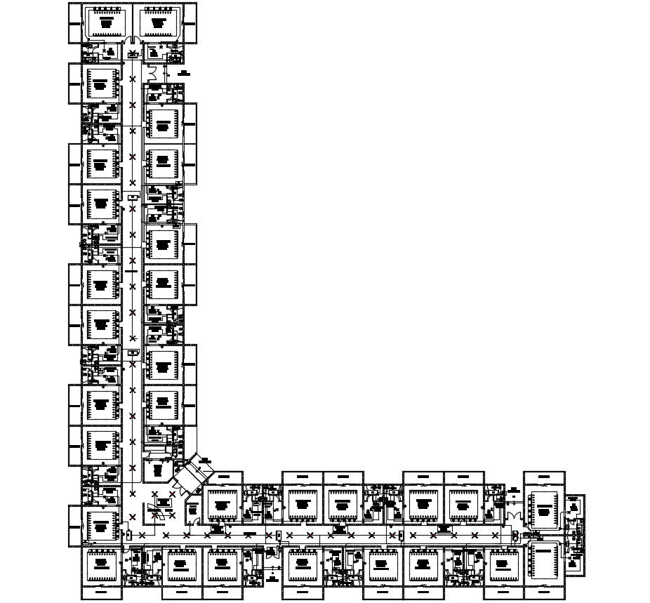 Hotel room design CAD plan AutoCAD file that shows the floor plan of hotel room design along with room dimension details and attached sanitary toilet and bathroom details.