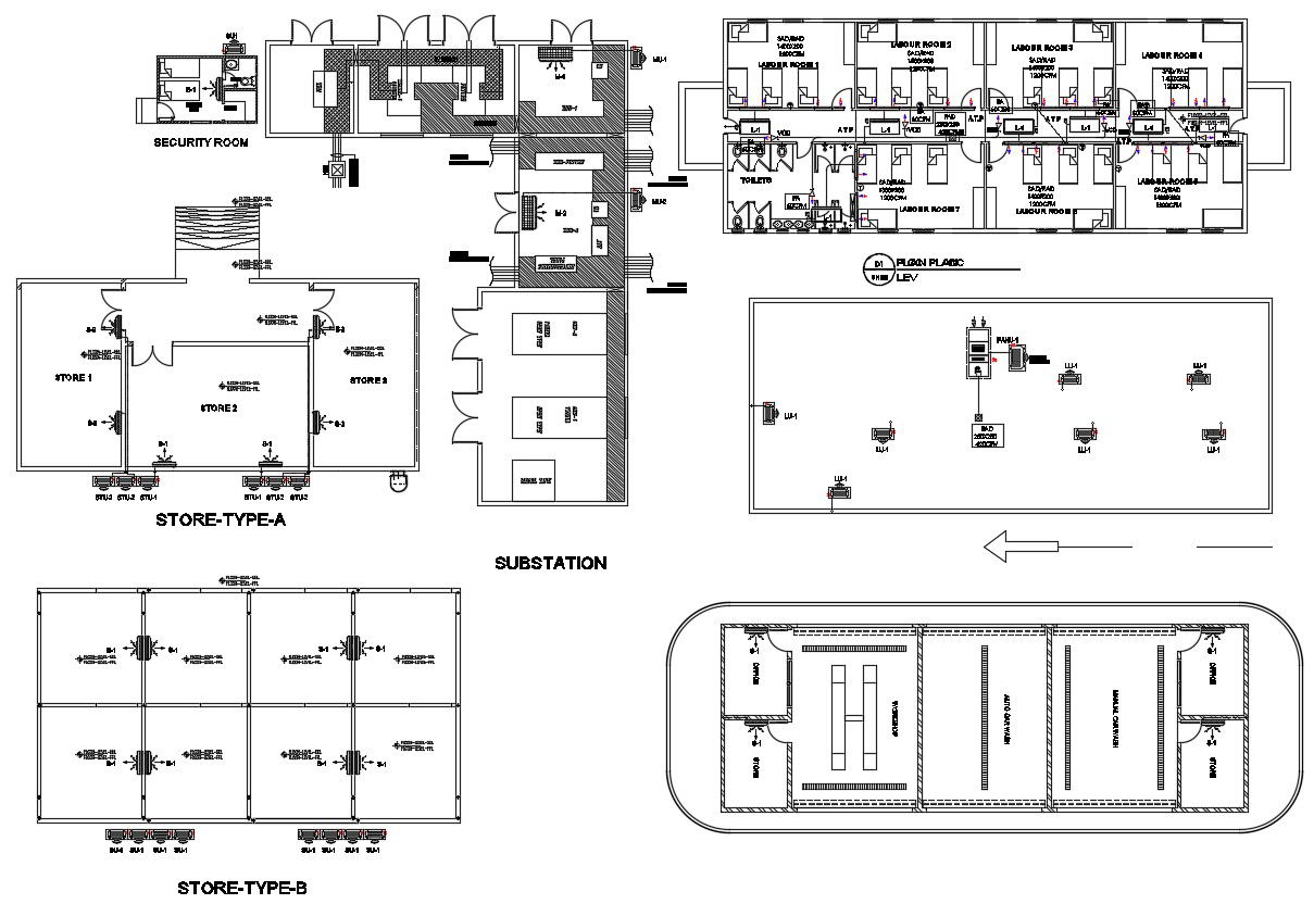 Drawing details of commerce building units that shows work plan drawing details of building along with room dimension details and ramp details also included in the drawing.