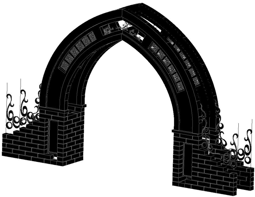Download facade entrance gate details 3d model that shows the design of facade along with brickwork wall details.