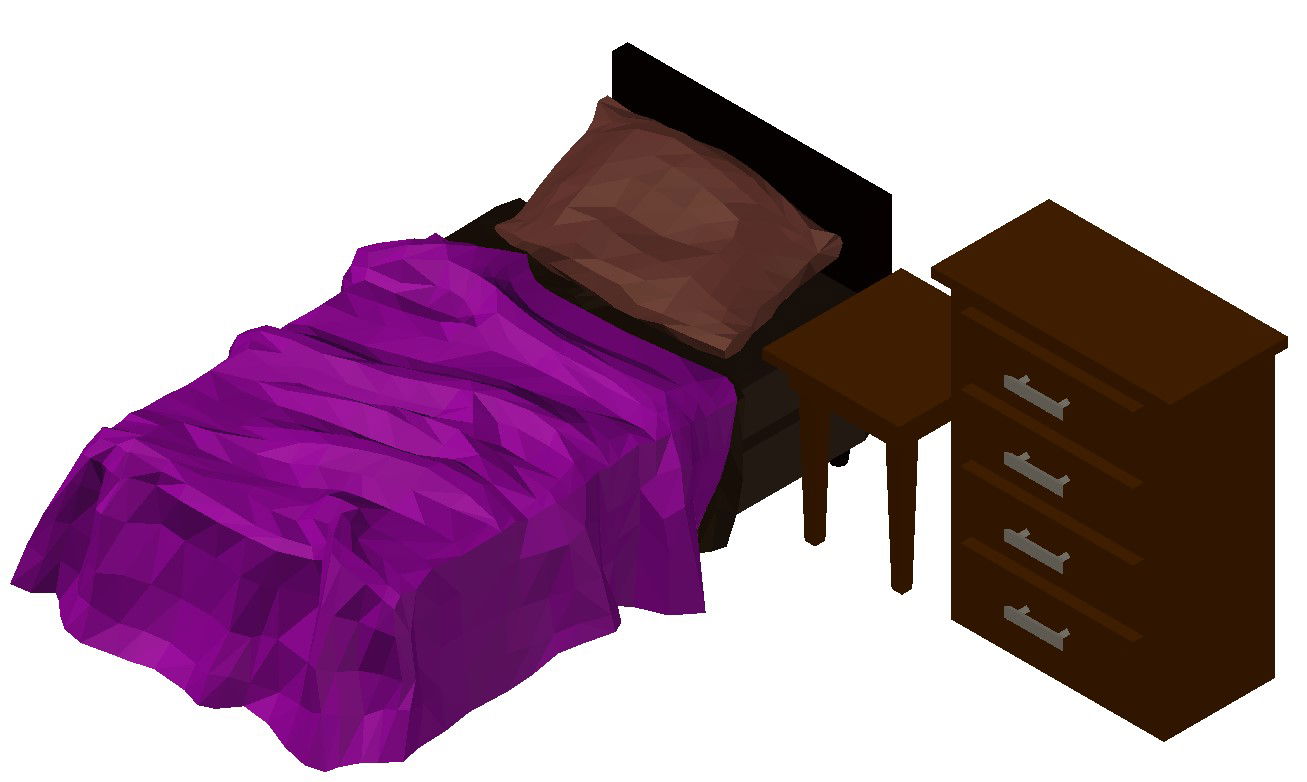 Bedroom furniture blocks design of single bed along with side table and cabinet furniture units blocks details.