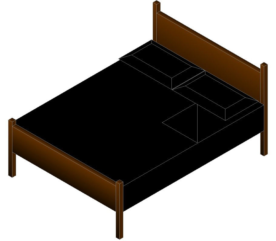 Double bed furniture blocks design drawing that shows an isometric view of double bed furniture blocks.