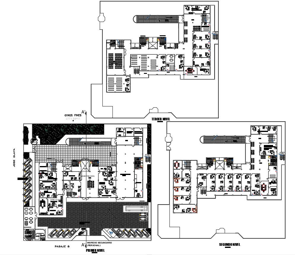 Educational building floor plan that shows work plan CAD drawing of building along with dimension furniture layout details and other blocks details also included within building premises.