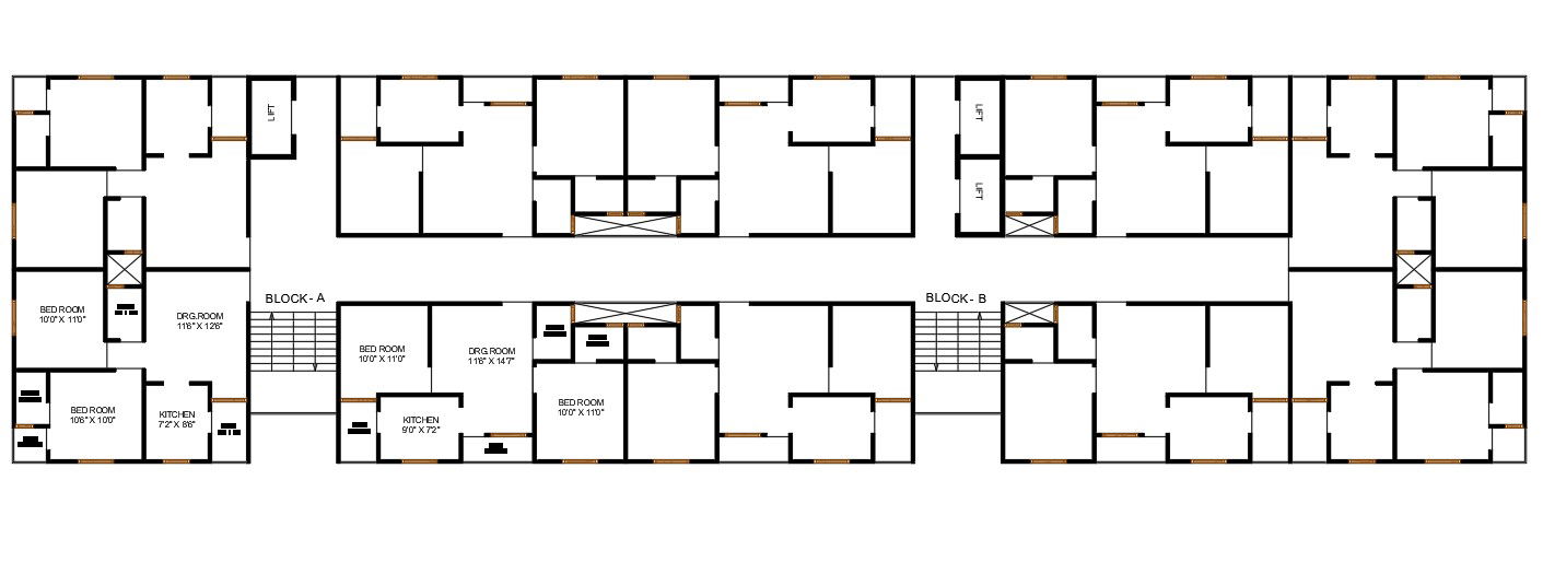 Apartment Lay-out Detail. This 1 floor part of 6 unit detail. and this 1 house block desihn in 2bhk house.