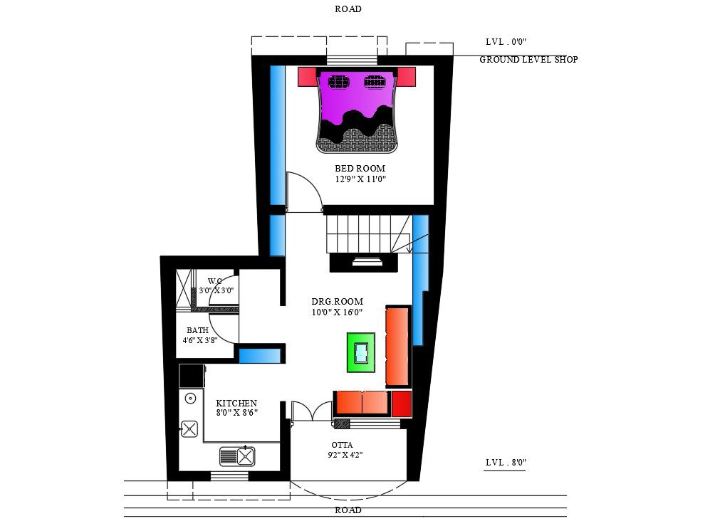 This Design detail of drawing room, kitchen , bedroom & stair design out & in .Simple house design.