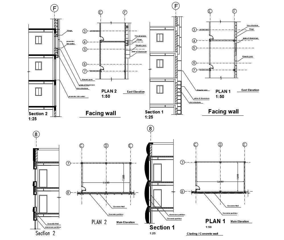 Free download Room plan and section CAD drawing that shows sectional details drawing of room and drawing drawn on a scale of 1:50.