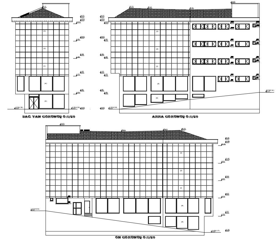 Download Office building Drawing CAD elevation file that shows building units different sides of elevation with leveling details.