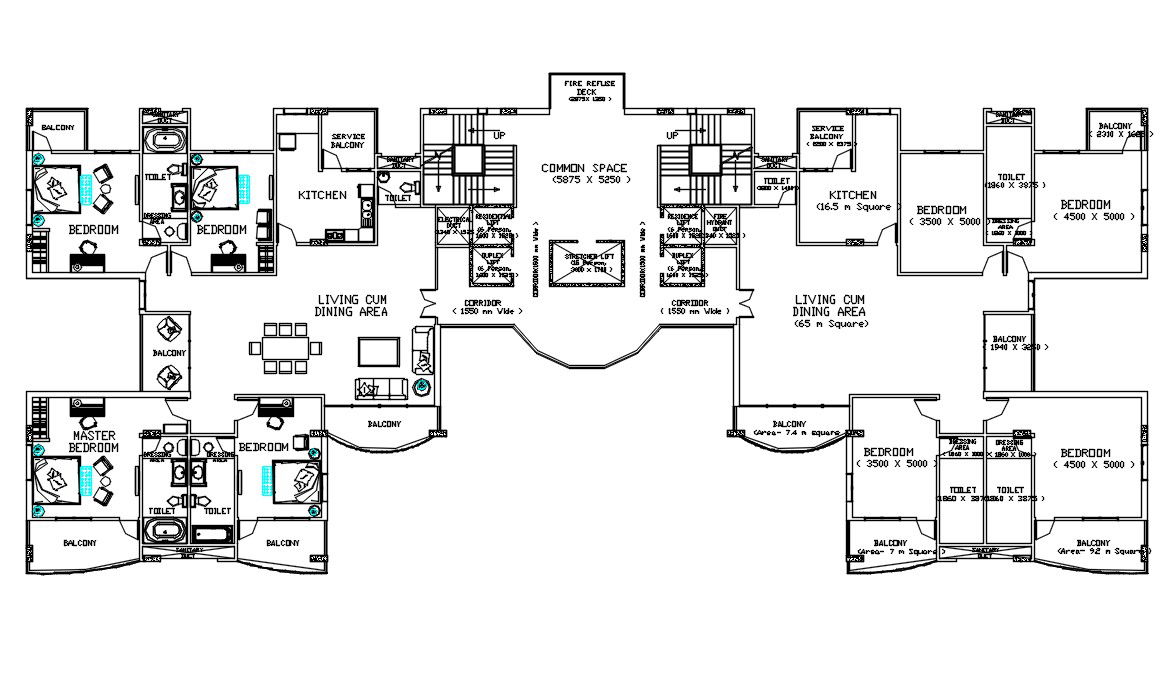 4 BHK Apartment AutoCAD Plan for Residential Layout and Floor Design