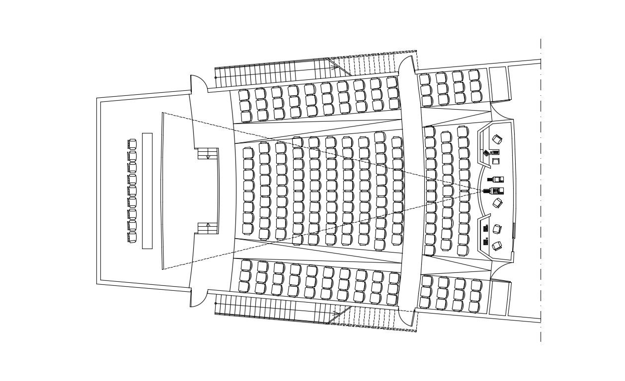 CAD design plan of auditorium room which shows auditorium room plan design details along with seating arrangement details.