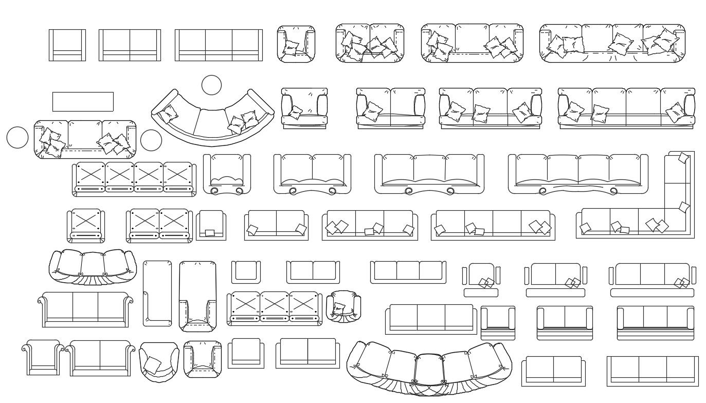 2d design of sofa CAD blocks that shows top elevation of various sofa-set design.