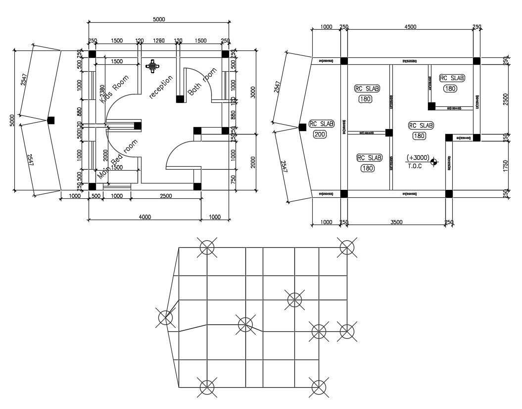 Mini house room CAD drawing download that shows bedroom dimension details along with dimension details and RC slab structure details.
