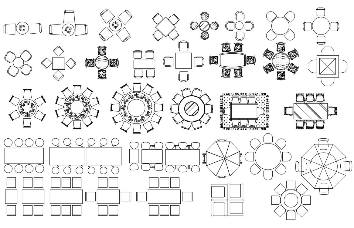 Furniture blocks design of dining table and chair CAD file which shows the top elevation of the dining table and chair.
