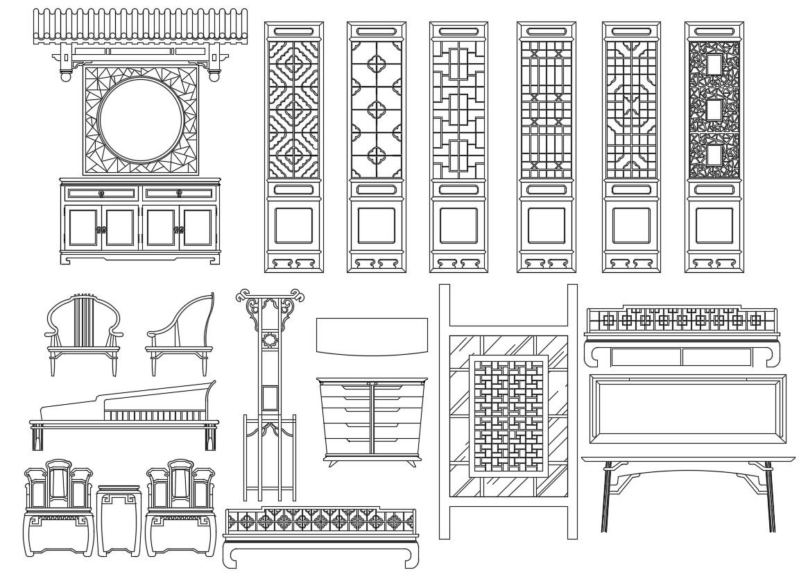 Furniture cad block; includes the furniture like chair, piano, table, and other details.
