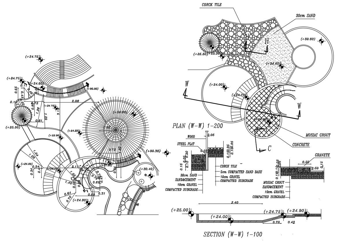 Swimming pool design plan and sectional drawing which shows normal water level details along with sectional details of the pool.