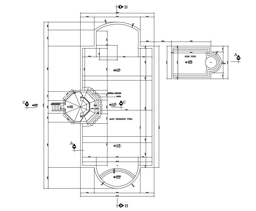 Swimming Pool CAD Plan with Detailed Layouts and Dimension Guide