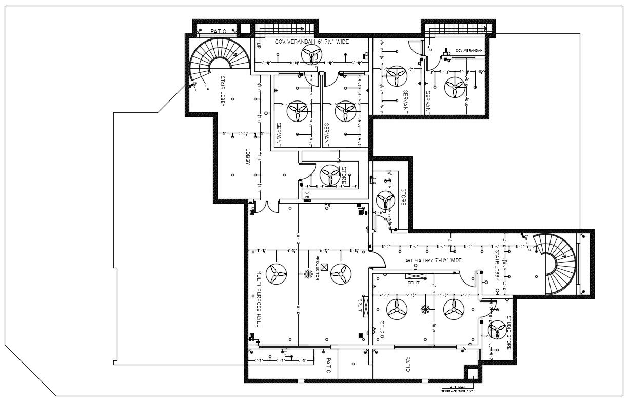Electrical Ceiling Layout Plan DWG File; electrical ceiling layout plan top view includes fan point and bulb point of corporate building. download AutoCAD file of the electrical layout plan and get more detail about installation.
