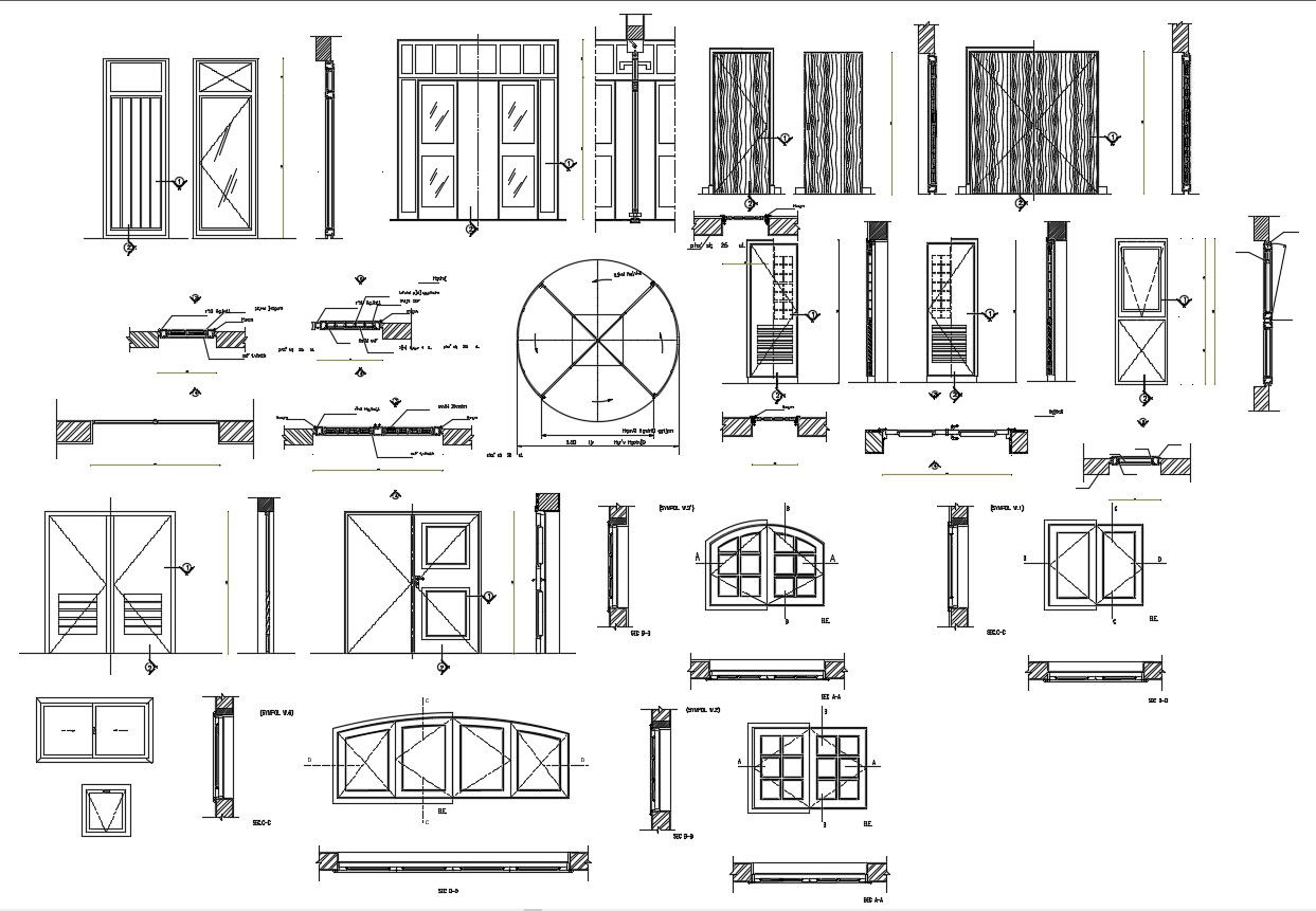 Door And Window CAD Blocks DWG file; single double glazed window detail and door installation detail. It also includes sectional view and elevation design of door and window CAD blocks.