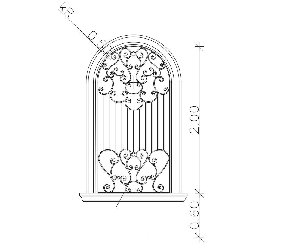 Download Free Window Riling AutoCAD File; download free AutoCAD file of window elevation design includes architrave window with iron railing.