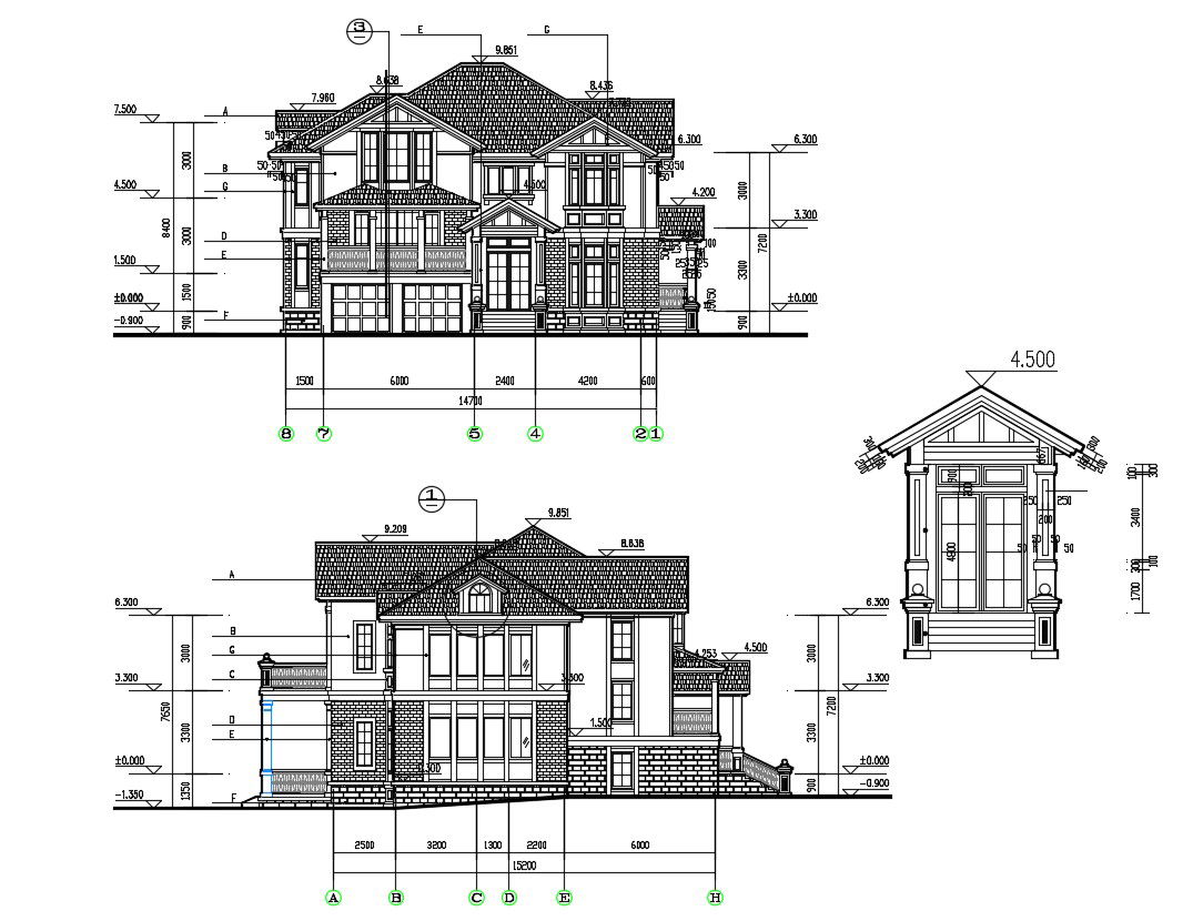 House Elevation With Dimensions in AutoCAD file; The architecture residence house building elevation design with dimension detail and beautiful traditional entrance door which makes improve CAD presentation.