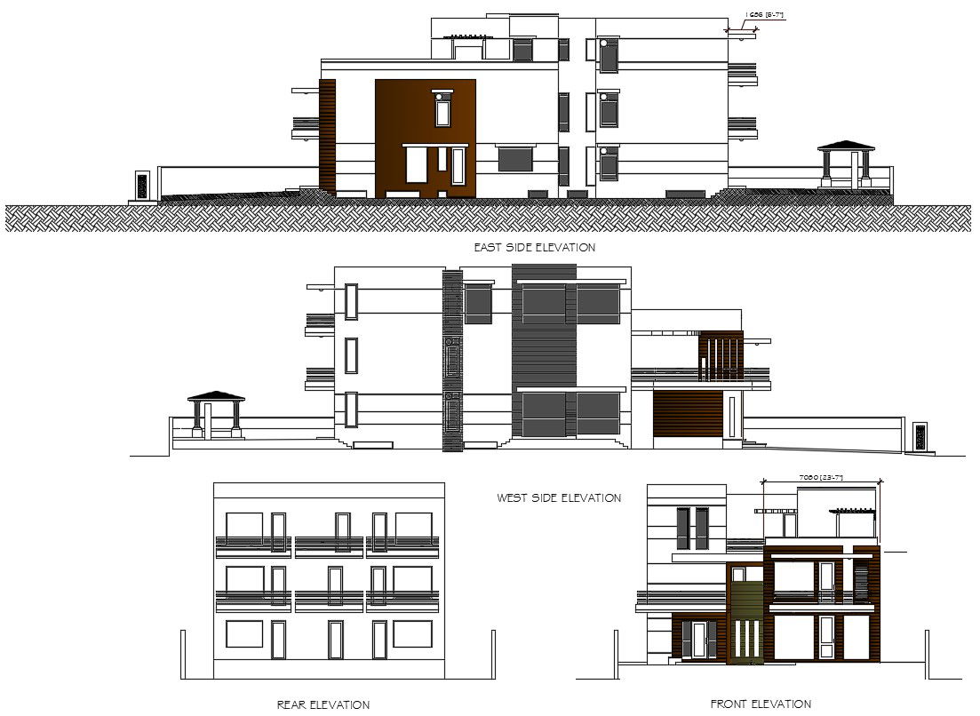 Modern House Elevation Drawing DWG file; the architecture modern elevation design of residence house project in CAD drawing. download house AutoCAD file that would serve as a good source for elevation design CAD presentation.