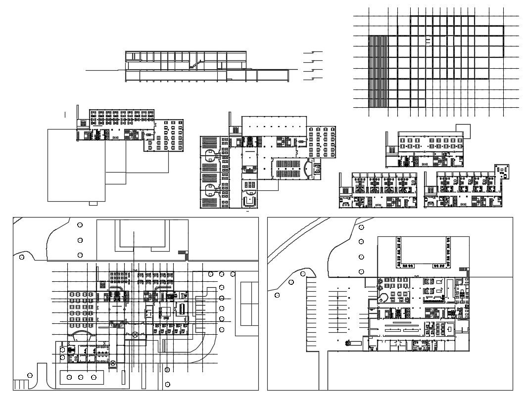 CAD design floor plan of the hotel which also includes details of the restaurant area, kitchen area, dining area, parking area details, boundary wall details, etc.