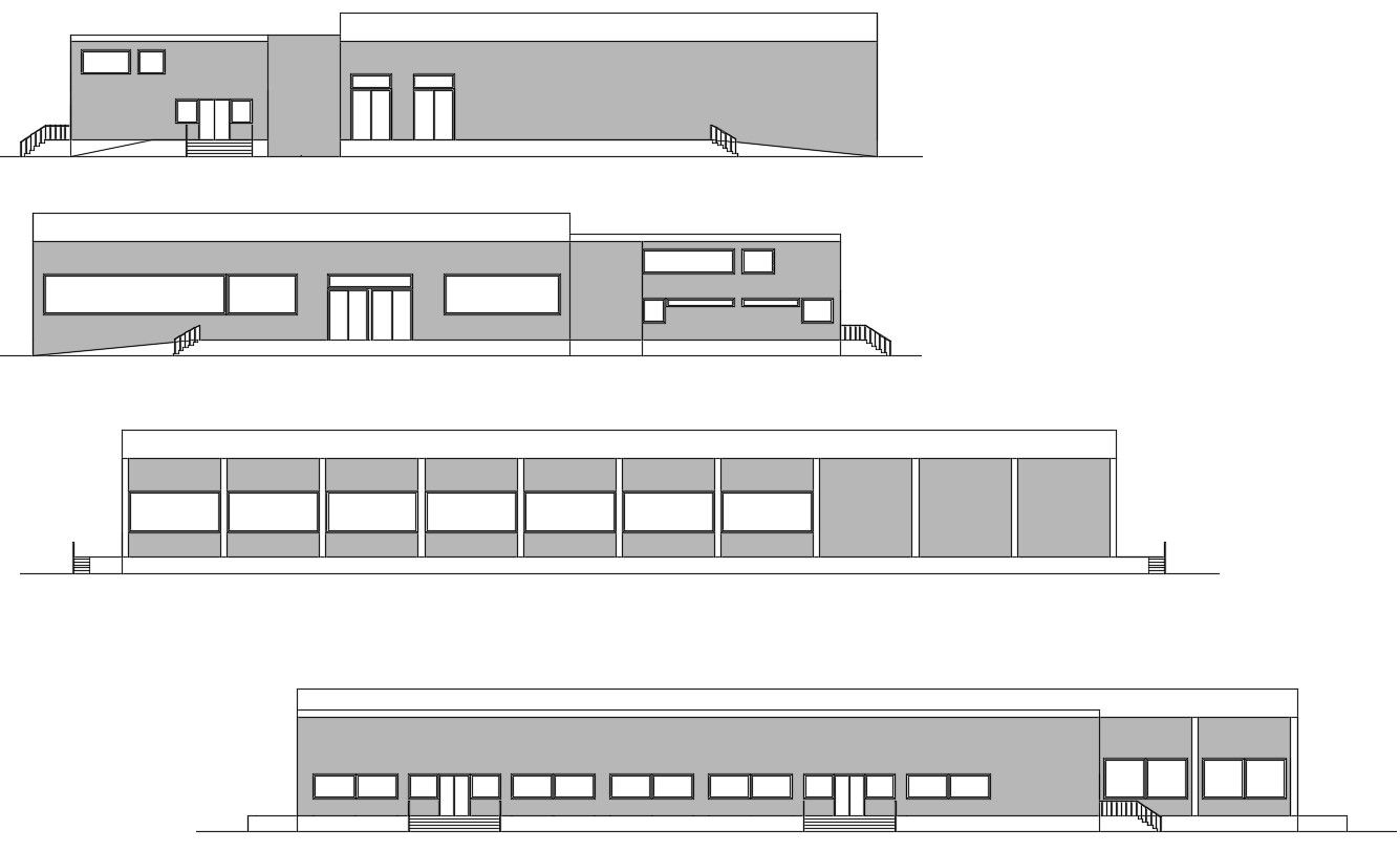 Industrial Building Elevation AutoCAD File; 2d CAD drawing of Industrial Building elevation design showing concrete wall and window glass detail. download free AutoCAD file and get more detail about elevation building.
