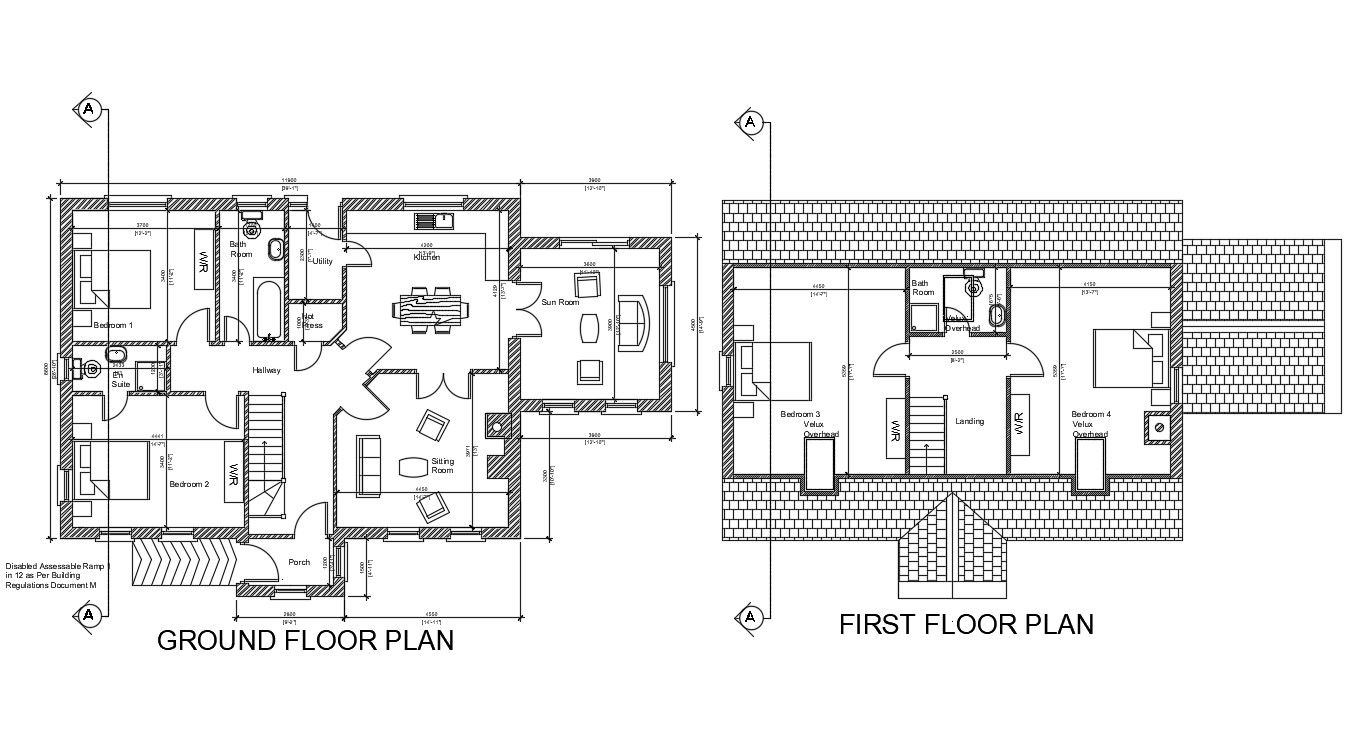 G + 1 House Plan AutoCAD file; the architecture ground floor plan and first floor plan of house project with furniture layout plan. Download 2d CAD drawing of house project and use the idea for your CAD presentation.