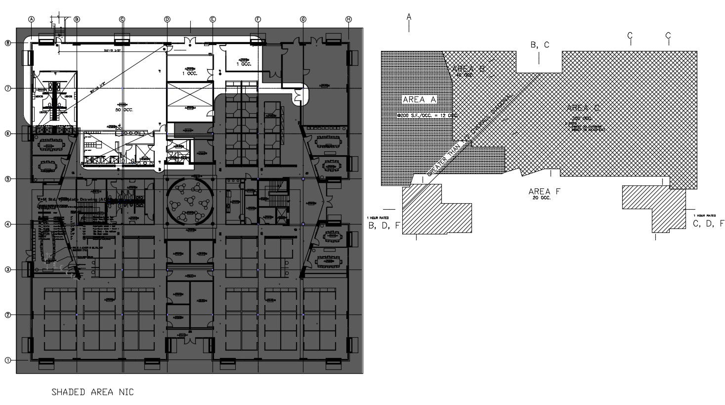 2d plan of bank building which shows the work floor plan of building along with building furniture blocks details, dimension hidden line details, floor level details.