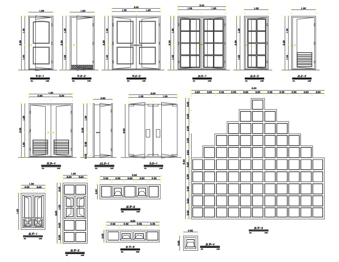 2d design CAD blocks of the door and window units which also includes door and window dimension and size details along with the pattern and design details.