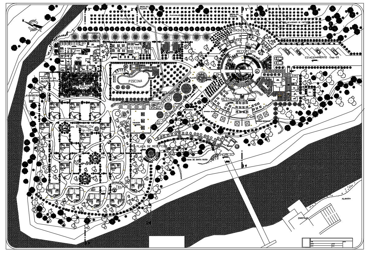 Hotel master Plan CAD drawing which includes furnitur5e layout design in building along with dimension hidden line, boundary details, landscaping details, etc.