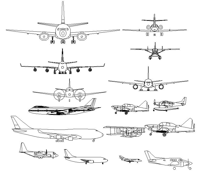 Aircraft CAD Blocks DWG file; download Aircraft CAD Blocks DWG file that shows front and side elevation design.