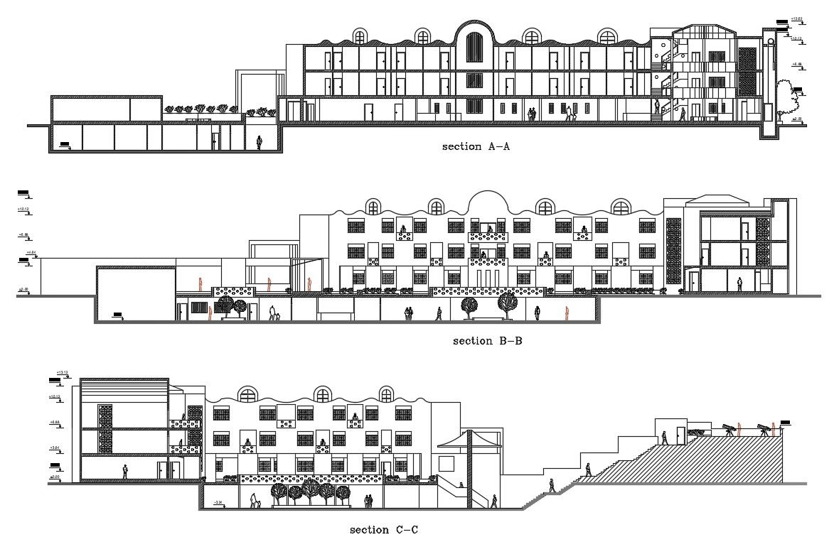 CAD sectional detail drawing of resort building which shows building floor level details along with leveling details.