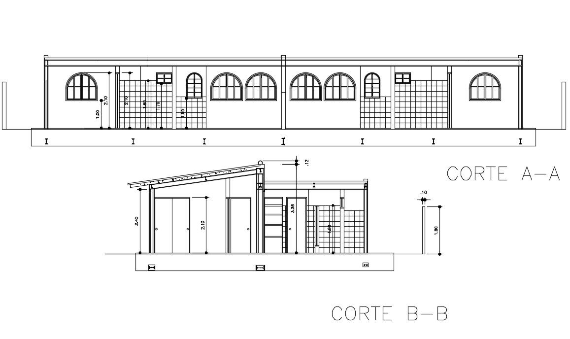 2d sectional drawing of housing apartment which shows single-story house section drawing along with dimension details.
