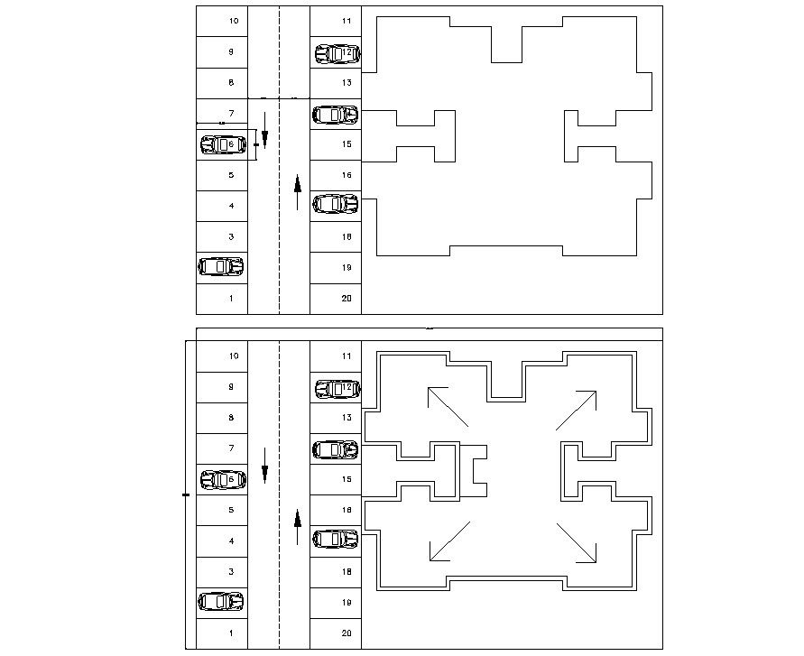 Apartment Top View Free Download DWG file; download free AutoCAD file of apartment top view plan with parking plan.