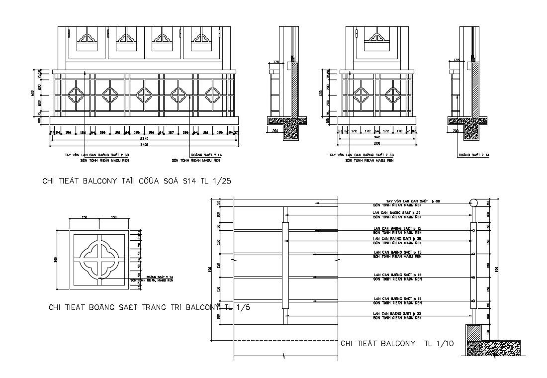 2d design of balcony railing which shows the railing design pattern along with dimension detailing.